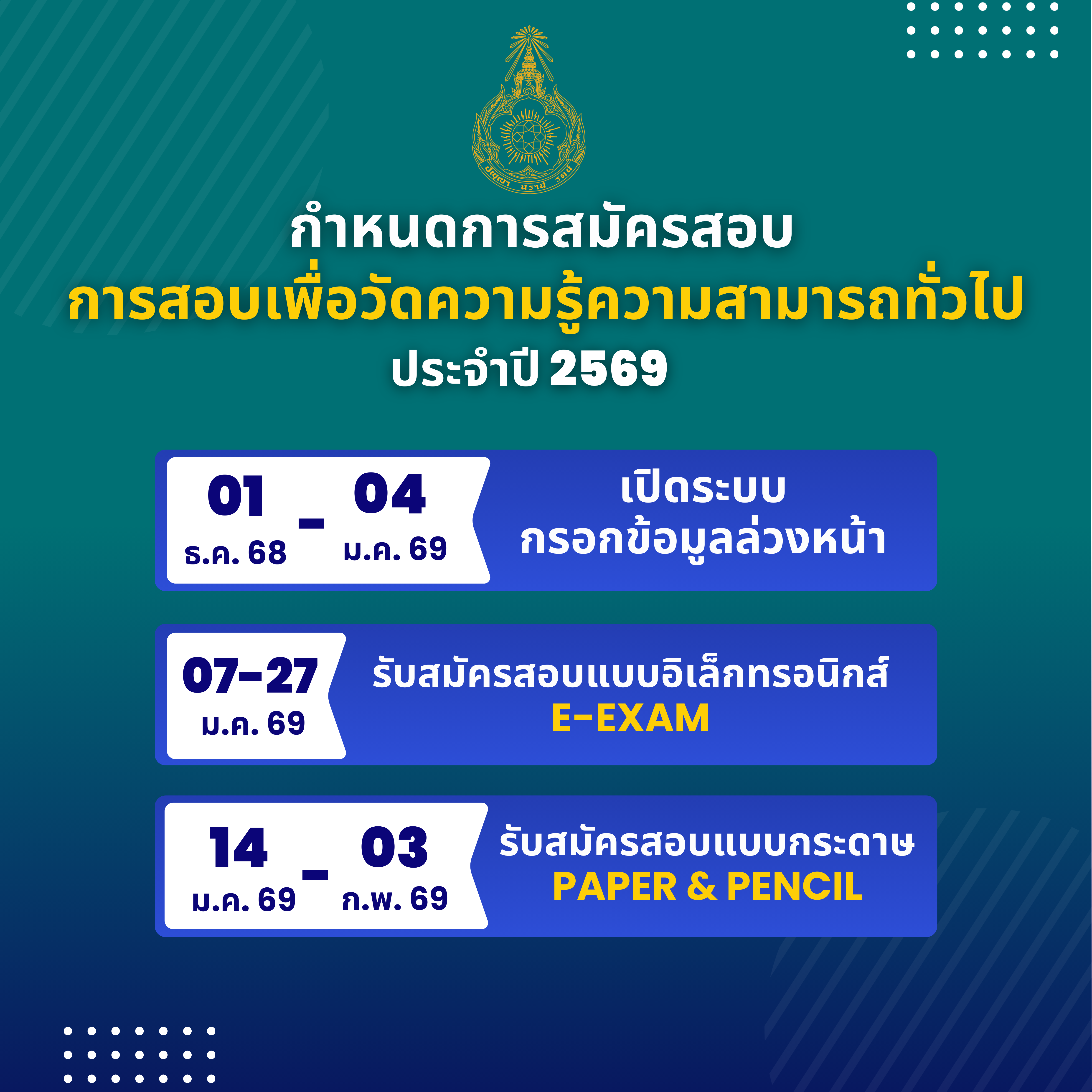แบบอิเล็กทรอนิกส์ (e-Exam): วันที่ 7 - 27 มกราคม 2569